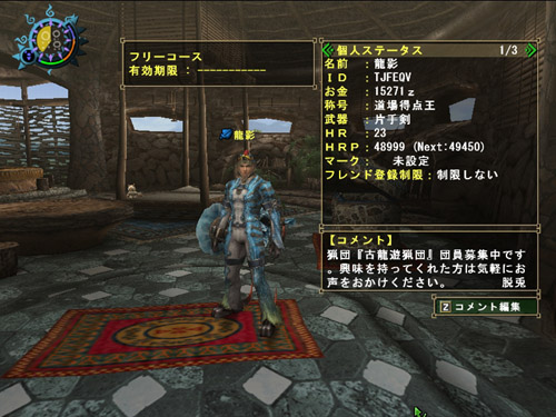 あと猟団「古龍遊猟団」は団員募集中です